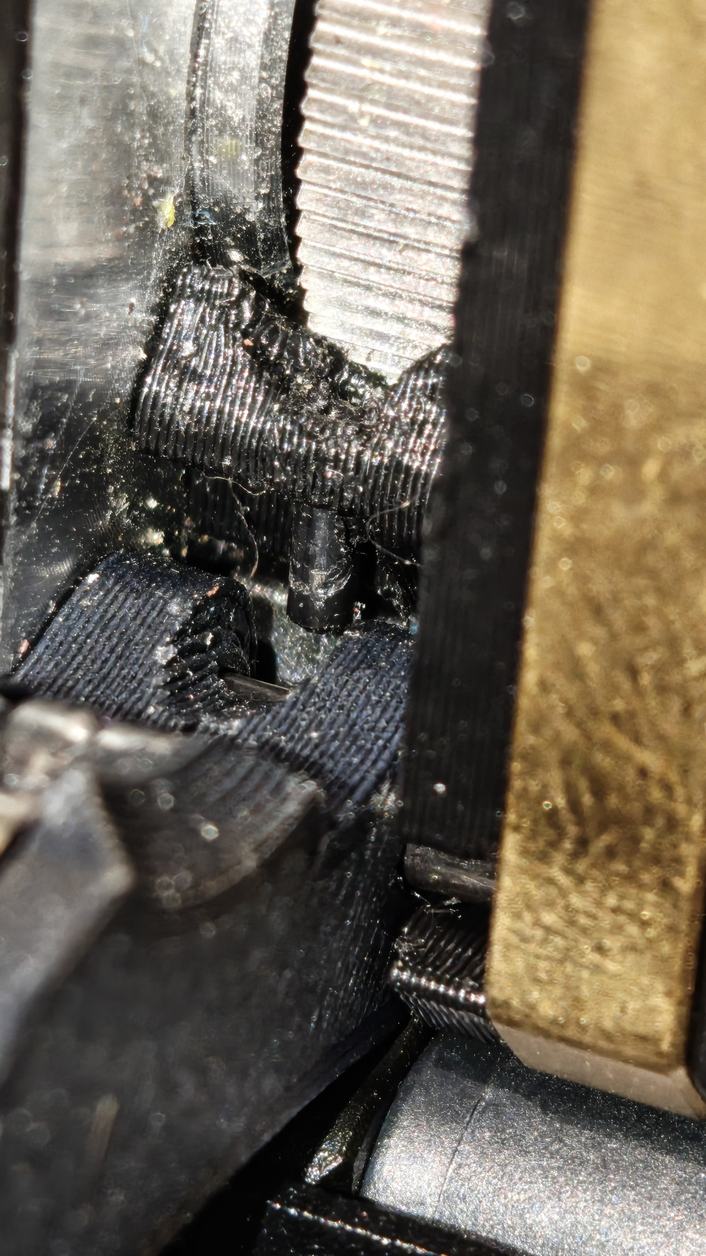 Résultat ? Des gros pâtés de filament qui s’accumulent sur la tour de purge. Au bout de quelques couches, ça finit par boucher l’extrudeur au niveau de l’idler. L’impression s’arrête, et je me retrouve avec un bouchon coincé juste à l’entrée de la buse.